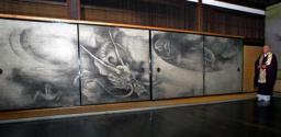 複製版は8枚ある雲龍図のうちの4枚。縦約2メートル、横約7・5メートルで、ふすま絵から巨大な龍が飛び出しそうな勢いだという。見たいなぁ〜。